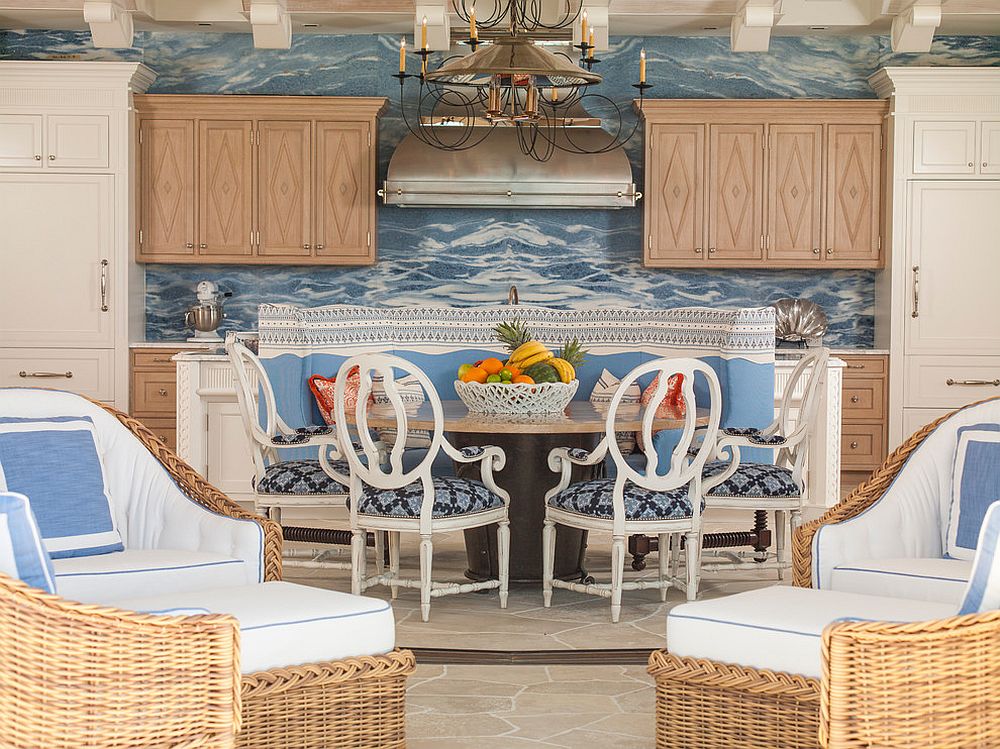 Một trong những lợi thế lớn của một phòng ăn với phong cách nhiệt đới là hàng loạt màu sắc nổi bật mà bạn có thể sử dụng nhưng không phải lo lắng chúng sẽ trông lòe loẹt. Mặc dù xu hướng hiện đại là trang trí nền trung tính và thêm màu sắc sáng tuy nhiên phòng ăn nhiệt đới lại dễ dàng phá vỡ khuôn mẫu này. Một chút màu ngọc lam kết hợp với màu trắng và chút của màu đỏ, xanh lá cây và màu vàng không mở ra một hương vị nhiệt đới mát mẻ và thú vị được lấy cảm hứng từ những bãi biển xanh vô tận và những loài động vật hoang dã của vùng biển Caribbean.
