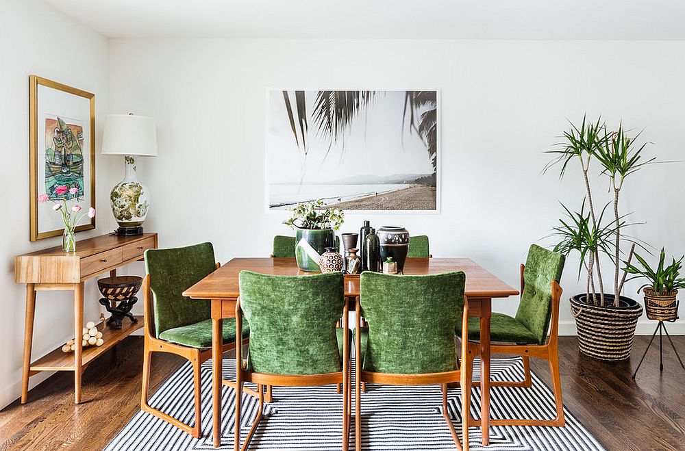 Phong cách nhiệt đới cũng hoàn toàn phù hợp với phong cách Bohemian. Sự kết hợp táo bạo này lại đem lại hiệu quả bất ngờ tạo nên sự sôi động, đa dạng cho không gian phòng ăn của bạn, không còn nhàm chán như trước.