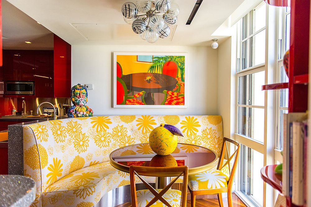 Nhiều người muốn lấy cảm hứng từ các vùng nhiệt đới nhưng lại không muốn sử dụng các sắc thái đặc trưng của như màu xanh lá cây... thì hoàn toàn có thể thử sức với màu vàng như một sự thay thế. Đây là một màu không bao giờ lỗi thời trang và có thể sử dụng cho cả những không gian bé nhỏ nhất như phòng ăn uống hay các ngóc ngách để tạo cảm giác tràn ngập ánh nắng.