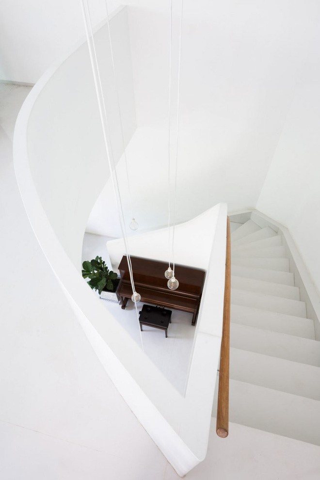 Cầu thang trắng tao nhã.