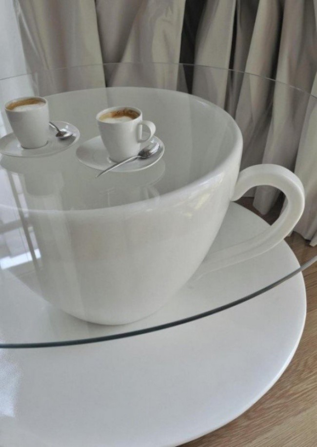 Chiếc tách khổng lồ trong phòng khách là ý tưởng không tồi cho những ai thích sự sáng tạo và phá cách trong không gian.