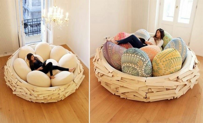 Bên cạnh đó còn có phiên bản ghế ngồi vô cùng độc đáo mô phỏng tổ trứng khổng lồ.