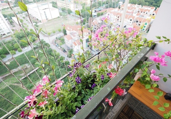 Lan can ban công luôn là vị trí tuyệt vời để bạn tận dụng. Bạn có thể mua chậu kẹp nhỏ nhiều màu sắc và trồng những loại hoa có tán rộng để tạo góc thư giãn cho căn nhà.